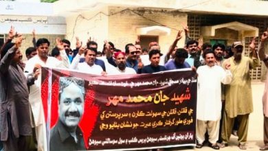 شهيد جان محمد مهر جا قاتل گرفتار نه ٿيا، جوابدارن جي گرفتاري لا مظاهرا
