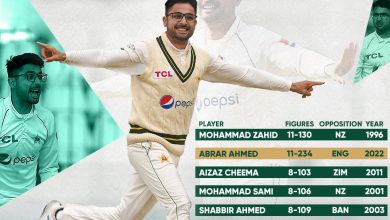 ابرار احمد ڊيبو ٽيسٽ ۾ 11 وڪيٽون وٺي محمد زاهد جو رڪارڊ برابر ڪري ورتو