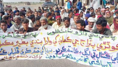 ٽنڊوباگو ۾ پاڻي کوٽ خلاف نصير واهه ڊائون جي سوين آبادگارن جو پيادل مارچ