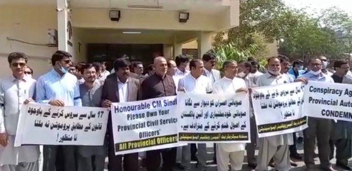 آفيسرز ايسوسيئيشن چيو ته ترقين ۾ صوبائي سروس جي آفيسرن سان ناجائزي ڪري کين ڀت سان لڳايو پيو وڃي، ترقين وارا نوان ٺهندڙ رولز آئين ۽ قانون توڙي عدالتي فيصلن جي ابتڙ آهن. رياض جکراڻي چيو ته پرامن احتجاج شروع ڪيو آهي، اڄ سنڌ سيڪريٽريٽ ۾ ڪاريون پٽيون ٻڌي وهنوار هلايو ويندو. هوڏانهن سنڌ جي وڏي وزير سيد مراد علي شاهه جي نوٽيس وٺڻ ۽ هدايتن تي پرنسپل سيڪريٽري صوبائي سروسز جي ڪامورن کان اعتراضن بابت آگاهي وٺي رولز بابت تجويزون طلب ڪري ورتيون. صوبائي سروس ايڪس پي سي ايس گروپ، پي ايس ايس ۽ پي ايم ايس گروپ جي آفيسرن گڏيل احتجاج رڪارڊ ڪرايو. ذريعن موجب صوبائي سروسز جي ڪامورن کي ترقيون ڏيڻ لاءِ نون ٺاهيل رولز ۾ ترميم آڻڻ جو فيصلو ڪيو ويو آهي، ايندڙ ڪابينا جي اجلاس ۾ سنڌ سرڪار پاران ترقين واري رولز ۾ ترميم آڻڻ وارو نقطو شامل ڪيو ويندو.