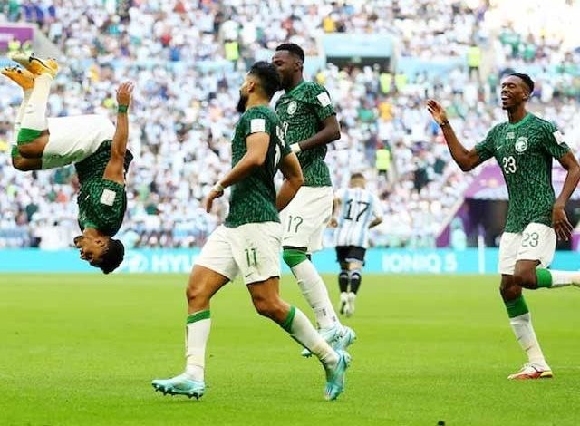 فيفا فٽبال ورلڊ ڪپ جي مقابلي ۾ ليجنڊ فٽبالر ليونل ميسي جي ٽيم ارجنٽينا کي سعودي عرب هٿان اپ سيٽ شڪست ٿي وئي آهي. ميڊيا مطابق دوحا ۾ جاري ايونٽ جي گروپ سي جي ميچ ۾ سعودي عرب هڪ جي مقابلي ۾ 2 گولن تان فتح ماڻي ورتي آهي. رانڊ شروع ٿي تھ ارجنٽينا جي ڪپتان ليونل ميسي 9 منٽ ۾ پهريون گول ڪيو، ان بعد هن ٻھ ڀيرا بال ڄار ۾ اڇليو، پر ريفري انهن کي فائو قرار ڏئي ڇڏيو. جڏهن تھ سعودي عرب جي رانديگرن جارحاڻي راند کيڏي آهي، جنهن ۾ 48 منٽ ۾ صالح الشهيري گول ڪري ارجنٽينا جو حساب برابر ڪري ڇڏيو، جنهن بعد سليم الدواسري ٺيڪ 5 منٽن بعد ٻيو گول ڪري ٽيم کي ڪاميابي ڏياري ڇڏي، پر ليونل ميسي سميت سندس ٽيم مان ڪنهن گول نھ ڪيو.